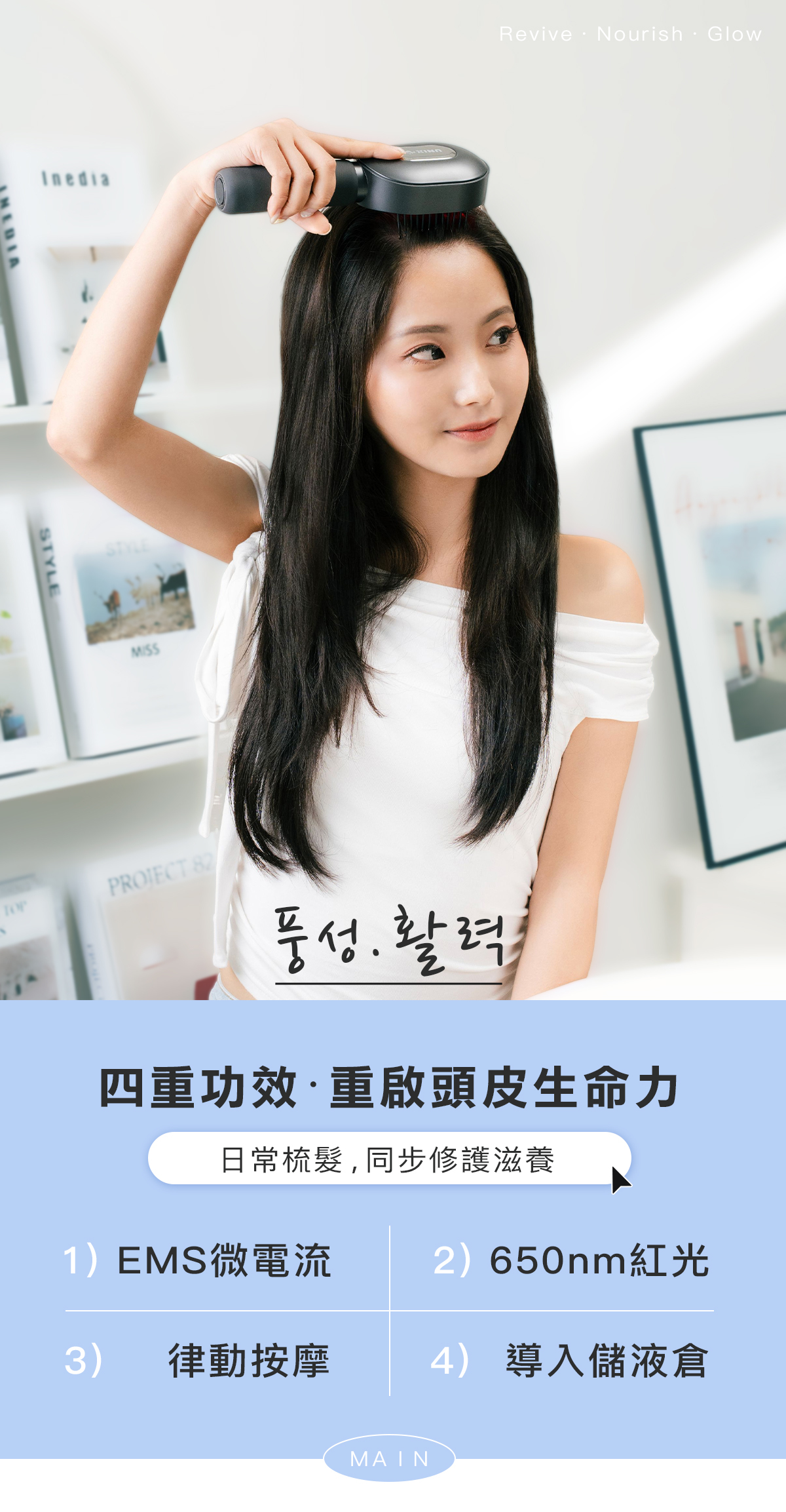 讓髮根健康、蓬鬆不出油有彈性,梳著梳著就連臉部肌膚也跟著⼀起V臉 給⾃⼰⼀個活絡頭⽪的感動